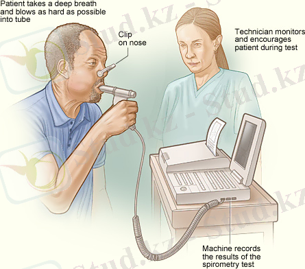 Өкпе жеткіліксіздігінің түрін және дәрежесін анықтау. Аурудың үдеуін және дәрежесін анықтау мақсатында өкпелік вентиляцияның көрсеткіш мониторингі. Бронхиальді обструкцияны бронходилятатормен, холинолитиктермен, ингаляциялық және мембрана тұрақтандырушы препараттармен курстық емдеудің тиімділігін бағалау.