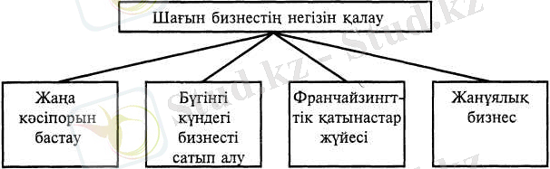 Шағын кәсіпорынның негізін қалау бойынша бірнеше көзқарастар бар: жаңа кәсіпорын бастау; бүгінгі күндегі бизнесті сатып алу; франчайзинг және жанұялық бизнес (1-сурет) .