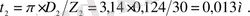\[t\phi={\frac{\pi\left(D_{1}+2\lambda h_{E1}\right)}{Z_{1}}}={\frac{3.14\,\lambda(0,18+2\lambda0.025)}{36}}=0.02i~,\]