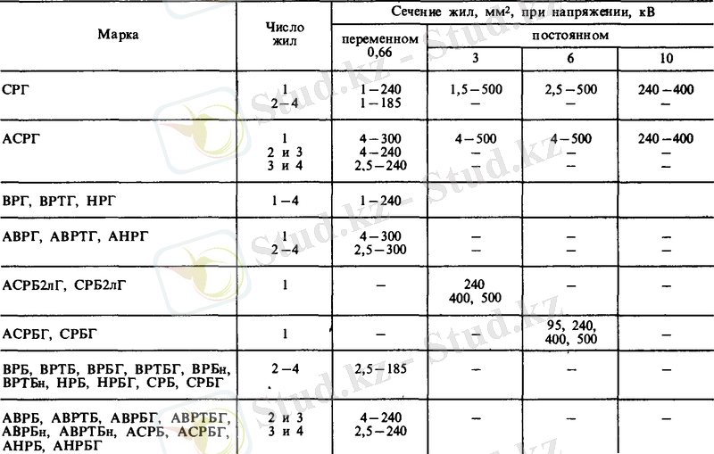 3 және 6 кВ тұрақты кернеулі кабельдерде тұтынушылардың талаптарына сай, 2 классты, қимасы 1, 5 - 10 мм 2 және 3 классты, қимасы 25 - 35 мм 2 мыс желі рұқсат етілген.