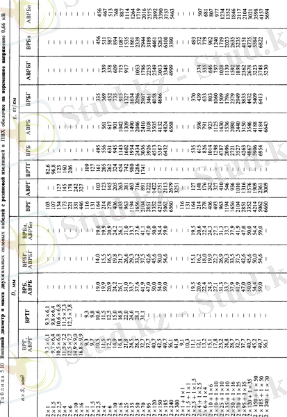 Резинамен оқшауланған күштік кабельдердің ішкі диаметрі мен массасы 5 - 7 кестелерде көрсетілген.