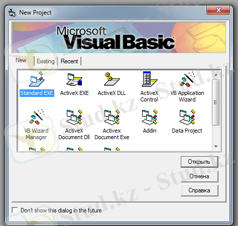 - Existing (бар жобалар) Visual basic 6. 0 ұсынылған мысалдағы проектілерді және
