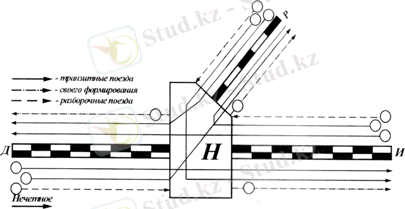 Тәулiк iшiнде стансада өңделiнетiн және стансадан тоқтаусыз өткен (өңделетiн транзиттiк, өңделмейтiн транзиттiк, жергiлiктi вагондар) әртүрлi категориялы вагондар станса жұмысының көлемiн құрайды. Пойыздарды құрастыру жоспары (тапсырманың 7 кестесi мен 2. 1 сурет), транзиттiк және стансаға өңделуге келетiн пойыздардың келу кестесi (1. 2 және 1. 3 кестелер) мен 1. 1 кесте негiзiнде пойыздағындар схемасы (1. 2 сурет) мен вагонағындар диаграммасы (1. 3 сурет) тұрғызылады.