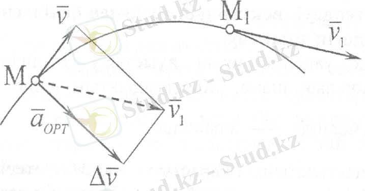 векторының бағыты жылдамдық өсімшесі ∆ векторының бағытымсн бағыттас және траекторияның қарастырылып отырған аумағының ойыс жағына қарай бағытталған, бірақ түсірілстін нақты нүктесінің орны болмайды.