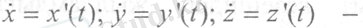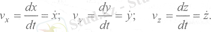мұнда: v x , v у , v z - жылдамдық векторының O x , O y , O z өстеріне проекциялары (13) және (14) формулаларының оң жақтарының теңдігінен, нүкте жылдамдығының координат өстеріне проекцияларын мынадай түрде жазуға болады: