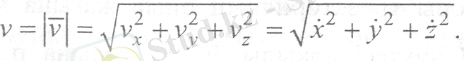 Осы анықталған өрнектерден жылдамдықтың тік бұрышты декарттық координаталар өстеріне проекциялары қозғалушы нүктенің сәйкес координаталарынан уақыт бойынша алынған бірінші туындыларына тең болатынын көреміз.