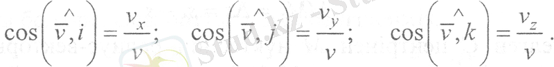 Жылдамдық векторының бағыты бағыттаушы косинустар арқылы анықталады.
