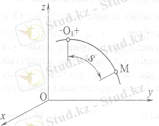 Табиғи тәсіл. Қозғалыс бұл тәсілмен берілгенде (2-сурет) нүкте -траекториясы мен оның осы траектория бойындағы қозғалысының теңдеуі белгілі болады. Траекториядағы О 1 М =s қашықтығын есептеудің бастапқы нүктесін белгілеп, оң және теріс бағыттарын келісіп алған жөн; траектория бойымен өлшенетін, сәйкес таңбамен алынған О 1 нүктесінен М нүктесіне дейінгі қашықтыққа тең кисық сызықты доғалық координатасы, М нүктесінін траекториясындағы, сонымен бірге Oxyz санақ жүйесіндегі орнын анықтайды. Бұдан бұрын уақыттың бастапқы кезін (t=0) анықтап, белгілеп алу қажет. Егер әрбір t уақыт кезіндегі М нүктесінің траекториядағы орнын анықтайтын s(t) заңдылылығы белгілі болса, онда нүкте қозғалысы берілген деп саналады, яғни