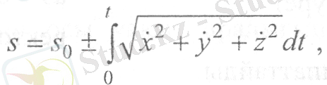 Осы тендеудің сол жағын s 0 ден s-ке және оң жағын нөлден t - ға дейінгі шектерде интегралдай отырып, нүктенің траектория бойындағы қозғалысының теңдеуін анықтаймыз.