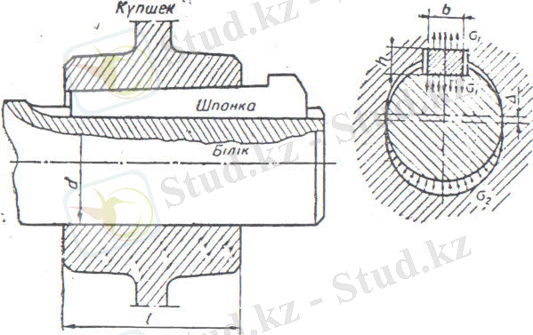 Призмалы шпонкалар (1. 1 сурет) кернеусіз қосылысқа жатады, сондықтан олардың жоғарғы бетінде саңылау қалдырылады және айналу моменті, біліктен күпшекке шпонканың бүйір қабырғасында жаншылу кернеуі мен шпонканың қимасында қиылу кернеуі пайда болады. Ал кернеу шамасын төмендегіше табуға болады: