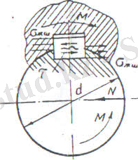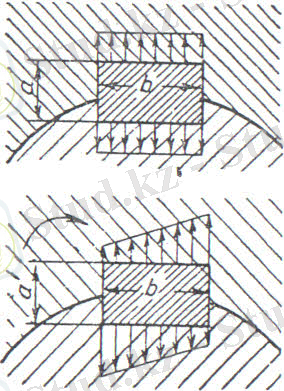 1. 6-сурет. Сына тәрізді шпонка әсер ететін күштер жорамалы бойынша.