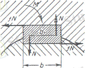 Бірақ фрикциялық шпонкалар арқылы берілетін айналу моментінің мөлшері аз болады. Үйкеліс күштің моментінен пайда болған бастапқы кернеу эпюрасы өзгермейді деп жорамалдап, қосылыстың беріктігін шамамен келесі формуламен есептейміз. [11, 62б. ]