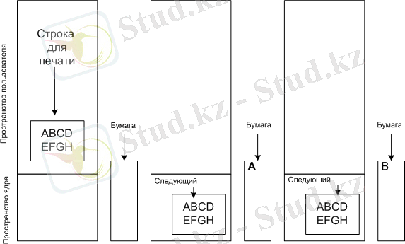 Енді приннің буферінің игерушілігінде, алғаш барлық жол буферге деген көшіріледі, бұдан әрі мөр басталады.