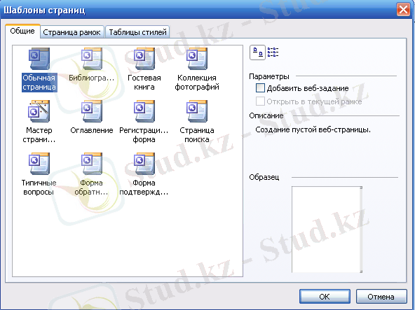 - Жаңадиалогтық терезесінде (1. 1-сурет) Қарапайым бетшешаблонын таңдап, ОКбатырмасын басыңдар.