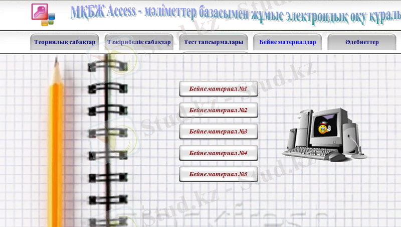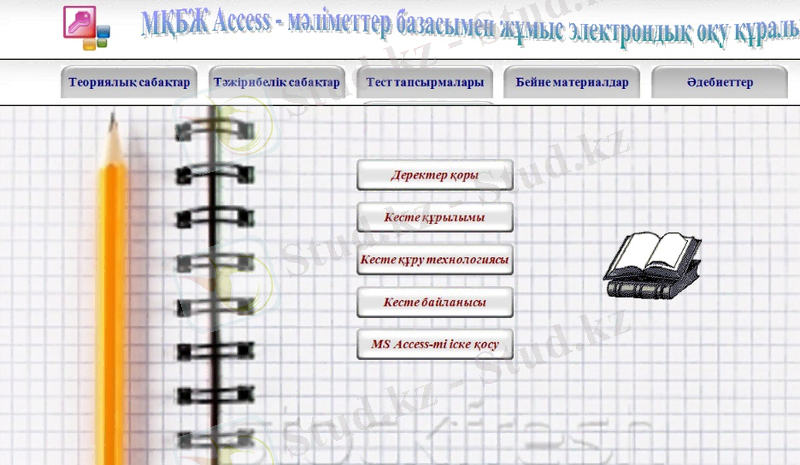 Мысал үшін, «МҚБЖ Access мәліметтер базасымен жұмыс» тақырыбында электрондық оқулық сөзін теремін.
