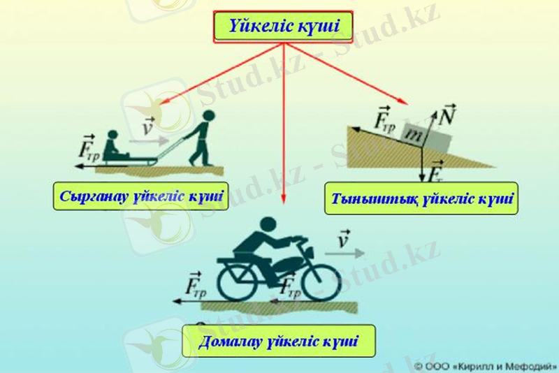 - Бір денені екінші бірдене бетімен қозғауға әрекет жасағанда олардың жанасу бетінде нөлден өзінің максималмәнінің арасында өзгере алатын үйкеліс күші пайда болады, яғни