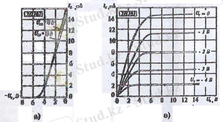 1. 20-сурет. p-n ауысулы өрістік транзисторының құйма-тиектік (а) және құймалық (ә) сипаттамалары.