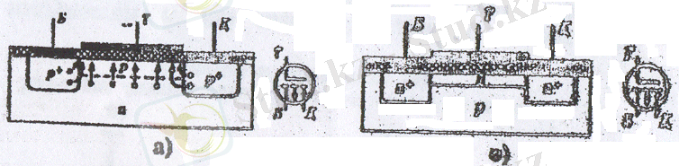 1. 21-сурет. Индукцияланған (а) және қондырылған (ә) каналды МДЖ транзисторының құрылымдары.