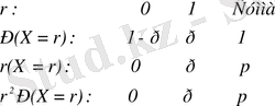 Результат выполнения программы символы, таңбасы, «жетістік, табыс» ықтималдығын белгілеу үшін қолданылады және осы дара параметр үлестіруді толығымен анықтайды. Жоғарыда қаралған жүйеге қарай отырып орташа және дисперсия мәндерін алу қиын емес: