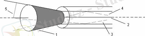 Талшықтағы сәуленің таралуы келесі суретте көрсетілген (сурет ) . Сәуле жарық өткізгішті бойлай таралуы үшін ол талшықтың осіне бойынша өстерi бұрышпен кiруi керек, яғни ойдағы кiретiн конусқа тию қажет. Бұл сыни бұрыштың синусы NA жарық өткiзгiш сандық апертурасы деп аталады.