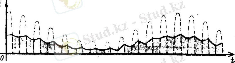 Сондықтан импульстар арасындағы интервалда ток жүктеме арқылы бәрібір әлгі жаққа қарай ағады (6-суреттегі үзік бағдарсызықтар. ) . Әрібір жаңа импульс конденсаторы астыртын зарядтайды. Осының әрқайсысында жүктеме арқылы жиілілігі дыбыстікіндей ток ағады да, тербеліс пішіні хабарлаушы станциядағы диілігі төмен сигналдың пішінін дәлме-дәл дерліктей жыртып береді (9-сурет) .
