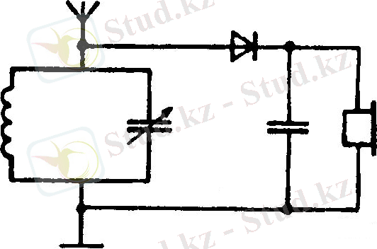 Ең қарапайым радиоқабылдағыш. Ең қарапайым радиоқабылдағыш антеннамен байланысқан тербелмелі контурдан тұрады да, ол детектордан, конденсатордан және телефоннан тұратын тізбек контурына жалғанады (10-сурет) .