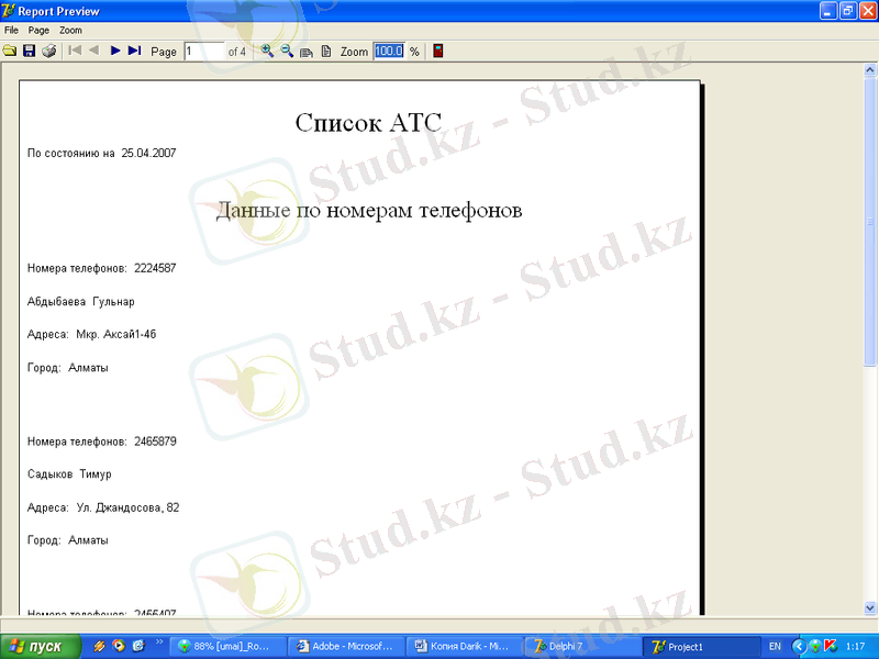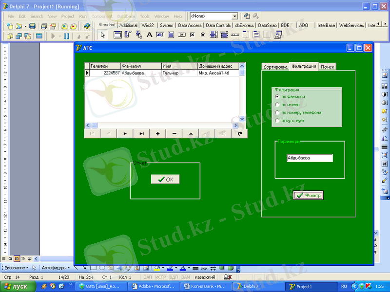 АТС (телефон анықтамалығы) жүйесін жобалау және Delphi-де мәліметтер базасын құру