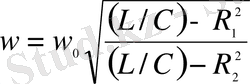 w -ға байланысты теңдеуді шешіп, резонанстың бұрыштық жиілігінің келесі мәндерін табамыз: