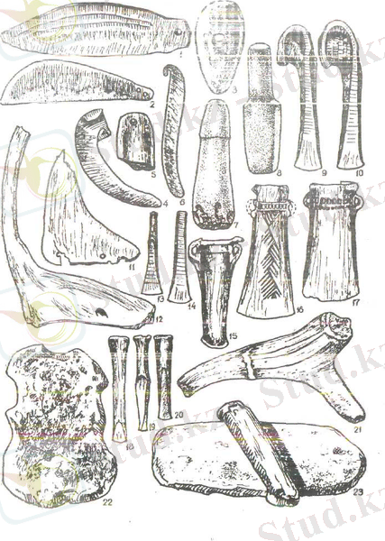Металдан, тастан жасалған құралдармен қатар тұрмыста сүйек заттар да қолданылды, Олардың жасау үішн ірі малдардың жіліктері, қабырғалары, жауырындары пайдаланылды. Әуелі сүйек балшық ыдыста қайнатылып, жұмсартылады, бұдан кейін майы жоқ, иілгіш, жұмсарған сүйек оңай ұқсатылды. Ұсатылған сүйек кепкен соң өзіне тән қатты, берік қалпына қайта келетін болды.