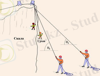 Еселік Кч =0, 55 болғанда кестеден көретіндей сақтандыру көлбеу бұрышының тек аз ғана диапазонында әрекет етеді, вертикальға жақын. Сақтандыру әрекет ететін алаң учаскесі аздаған радиуспен шектеледі Rстр = Hcos?, мында Н - жартас ұзындығы. Δ=80º болғанда сақтандыруші қатысушының жоғарғы карабиннің вертикалынан алыстауы жарамды радиусы жартас ұзындығының бестен бір бөлігі болады. Бұл жағдайда сақтандыруші қатысушының төменгі алаңда аздаған орын ауыстыруының өзінде сақтандыруді жоғалтуға әкеп соғады.