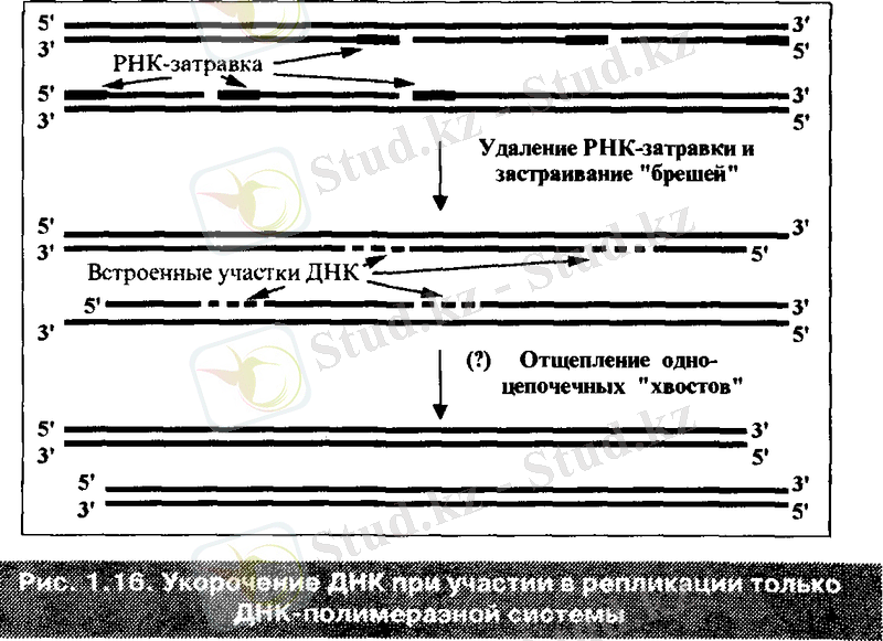 Әрбір репликацияда ДНҚ молекуласы «РНҚ - ұйытқыш» ұзындығына сәйкес 10-15 нуклеотидке қысқаруы тиіс болғанымен, шындығында 50-65 нуклеотид жұбына қысқарады. Бұл ДНҚ - полимеразалық кешенінің қасиетіне байланысты болады.