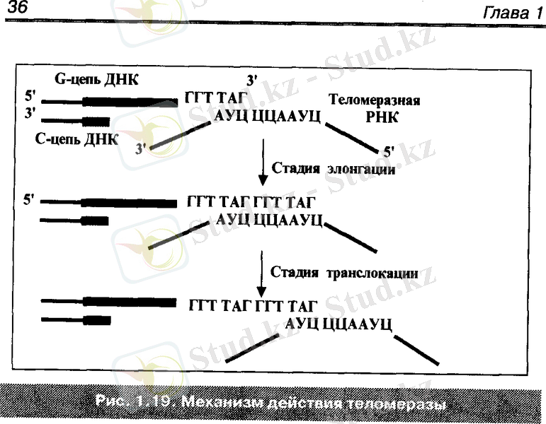 Теломераза жаңа қысқарған тізбекті емес, аналық ұзарған тізбекті ұзартады.
