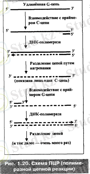 Ұзарған G - тізбекпен С - праймер әрекеттесіп, ДНҚ - полимеразамен өсіріледі ( G - тізбегі матрицалық қалып ретінде пайдаланылады) . Екі тізбекті ДНҚ құрайды. Оның тізбектерін қыздыру арқылы ажыратады.