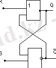 -түзу шығысқа сәйкес келеді. И-НЕ логикалық элементіндегі RS триггерлер түзу кірістегі шығысынан сигналды өндіру үшін оның кірісіне инверсті сигналдар беру керек. [2]