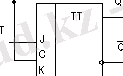 Т-триггерге айналу үшін J, K кірістерін біріктіру керек. Егер бұл кірістерге логикалық 1, С кірісіне тактілік импульстар берілсе, онда Т-триггер ретінде жұмыс істейді. [2]