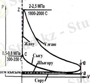 . 2-сурет. Төрт тактілі қозгалткыштың газ қысымының өзгеру диаграммасы