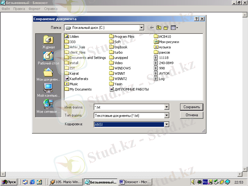 Блокнот мәтіндермен жұмыс жасауға арналған бағдарлама. Мәтіндерді сақтауға, баспаға жіберуге, көшіруге т. б операцияларды қолданамыз. Блокнот бағдарламасын ашу үшін Пуск менюін таңдап, Программы - Стандартные - Блокнотты тышқанмен түрту қажет. Төменде көрсетілгендей Блокнот бағдарламасы ашылады.