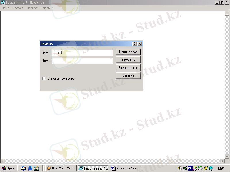 4. Табылған сөздер үлгісін ауыстыру үшін Заменить все түймесін басыңыз. Әйтпесе бір-бірден ауыстыру үшін Найти далее түймесін басып, одан соң Заменить түймесін басу қажет.