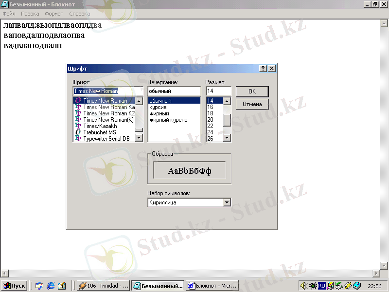 - Шрифт, Начертание және Размер өрістерінен қажетті мәнді таңдаңыз.