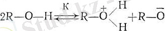 Мұндағы R=Н болса, онда ол су болады да К=10 -1 , R=СН 3 болса, онда ол метил спиртінде К=10 -16 , R=С 2 Н 5 -те К=10 -18 болады. Спирттерде сутек атомы өте әлсіз байланыста болғандықтан, оларды қышқылды демей, қозғалғыш (активті) деп атайды. Керісінше, қанықпаған байланысты қосылыстар спирттердің алкоголяттары, күшті негіз іспеттесте тепе-теңдік жағдайында мына төмендегідей өрнектеледі: