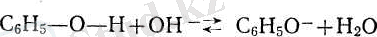 Егер фенолдың константысын есептесек, ол К=17. 10 -10 . Демек, фенол күкіртті сутек сияқты әлсіз қышқылдан да әлсіз. Бірақ та бұған қарамастан фенол негіздермен суда мына төмендегі теңдеу бойынша әрекеттесіп, тепе-теңдік