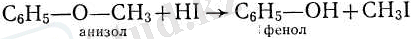 Егер эфирдегі органикалық қалдықтың біреуі арил болса, онда фенол және галогенді алкил шығады: