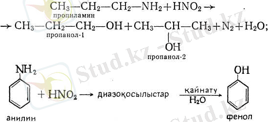 Алифатты және ароматты қатардағы біріншілік аминдер азот қышқылымен өңдегенде оксиқрсылыстарға түрленеді. Мұндайда ароматты аминдер жеке бөлінетін диазоқосылыстар береді. Оның соңғы заты мына төмендегідей: