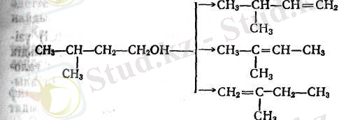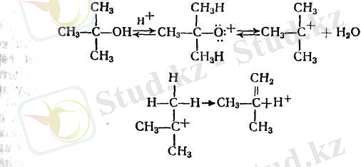 2. Лабораториялық жағдайларда олефиндерді алудың ең көбірек қолданылатын тәсілі спирттерді сусыздандыру (суды бөліп алу) :