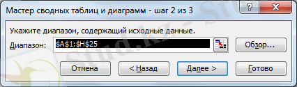 1) Қажет мәліметтер тұрған диапазонды белгілеп алыңыз;