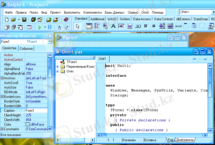 1-сурет. Delphi 6 жасаудың интегралданған ортасы.