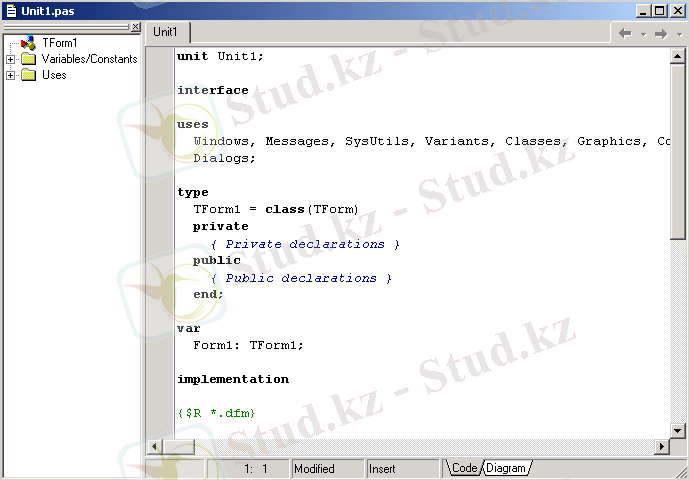 Форма терезесінен Unit кодына және одан кері өту Ғ12 пернесі арқылы орындалады.