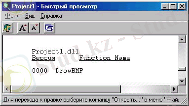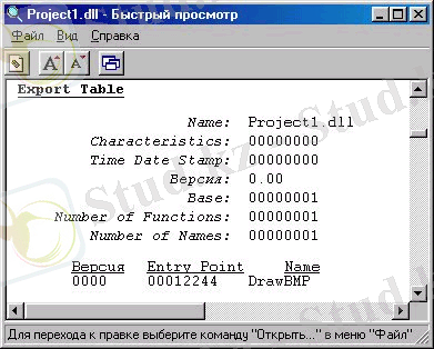 1. 1. сурет Құрылған кітапхананың секциясындағы экспортталған функцияларда DrawBMP атауының жоқ болуын қадағалаймыз.