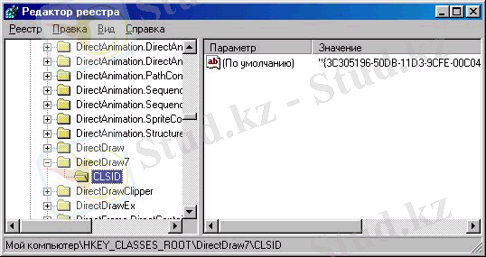 Regedit. exe реестірін реттейтін жүйелік бағдарламасын іске қосқаннан кейін идентификатордың кез келген түрін іздеуді қимылдатқаннан кейін ақпарат базасындағы қажетті жазуларды табуға болды. (1. 3. сурет)
