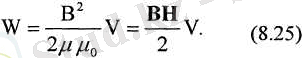 Бұл энергияны топтың магнит энергиясы немесе топтыц меншікті энергиясы деп атайды. Магнит өрісінің энергиясы. (8. 24) формула тоқтың магнит энергиясын индуктивтілік және тоқ арқылы өрнектейді (ферромагнетиктер жоқ кезде) . Бірақ Бұл жерде де зарядталған денелердің электр энергиясы тәрізді, энергияны тікелей В магнит индукциясы арқылы да өрнектеуге болады. Мұны әуелі ұзын соленоид үшін көрсетейік, оның ұштарындағы өрістің ауытқуларын ескермейміз (шеттік эффекттерді) . мәнін формулаға қойсақ, онда